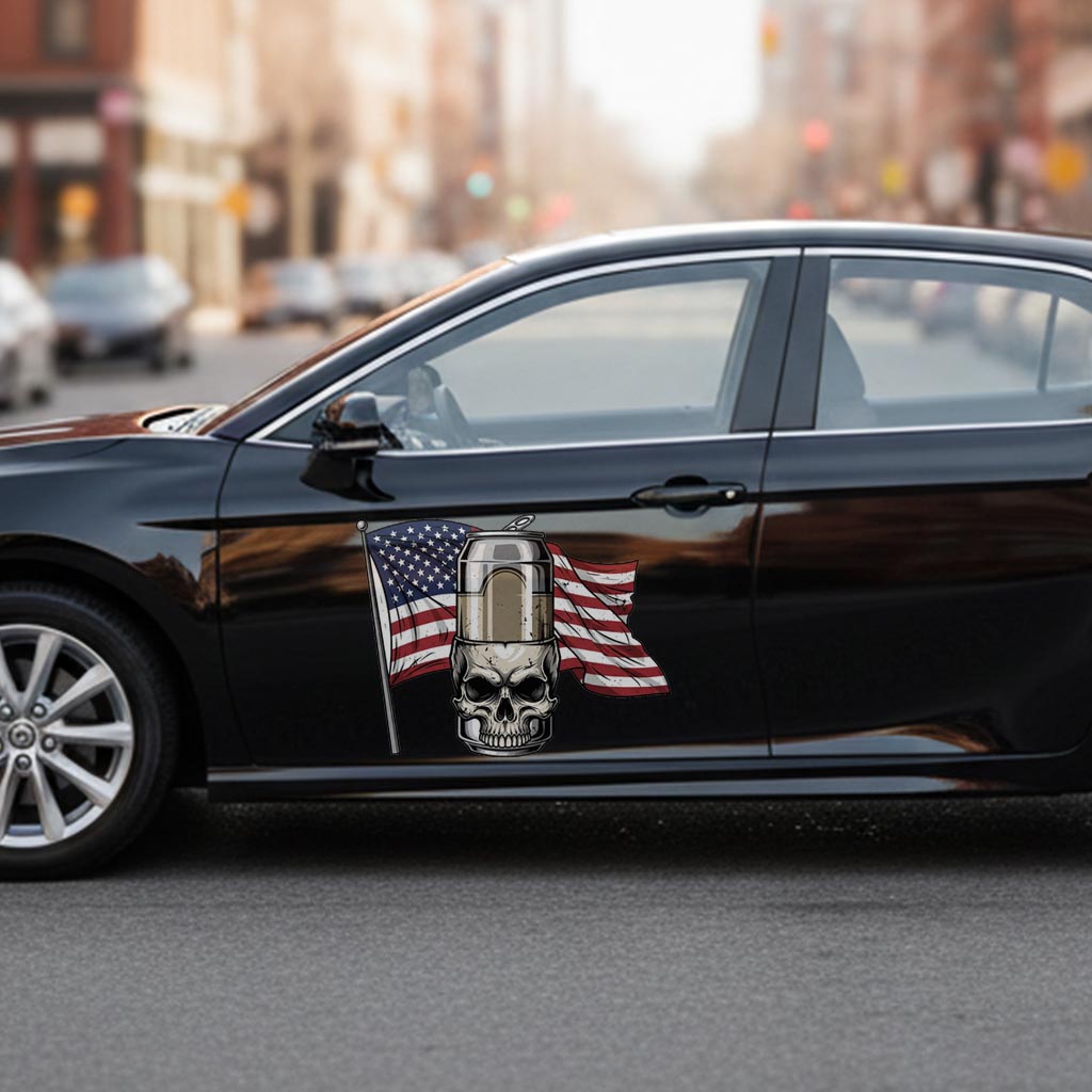 American Skull Beer Car Sticker