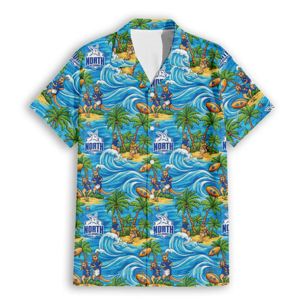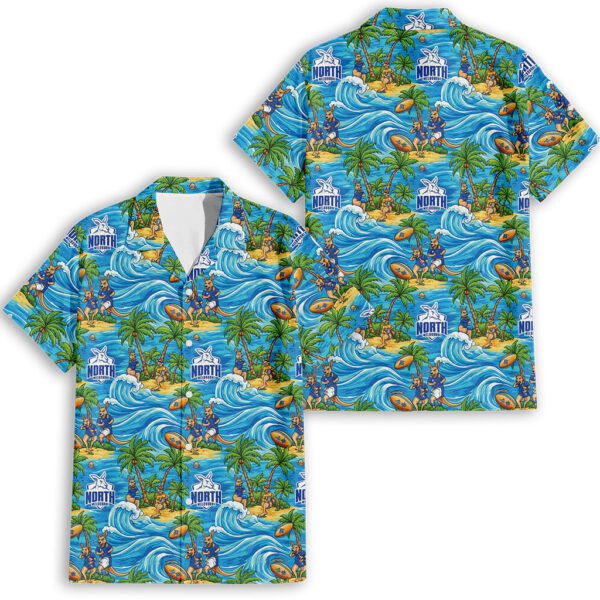 The design blends vibrant Hawaiian patterns with the unmistakable blue and white of the Kangaroos, creating a bold look that reflects both tradition and passion. Tropical motifs pair seamlessly with team graphics, celebrating the energy, pride, and excitement that come with every game. More than just casual apparel, this shirt is a wearable tribute to the dedication and loyalty that unite Kangaroos fans everywhere.