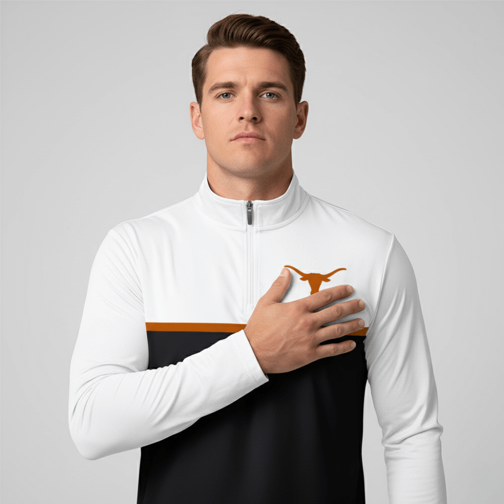 Show your Longhorn pride loud and proud with the Texas Longhorns Active Quarter Zip Pullover — the perfect mix of performance, comfort, and team loyalty. Crafted from high-quality, moisture-wicking fabric, this pullover keeps you cool, dry, and ready for anything, whether you’re training, layering up for game day, or tackling your everyday routine. The athletic fit provides unrestricted movement, while the quarter-zip neckline offers versatile comfort and an easy, modern look.