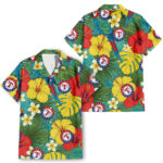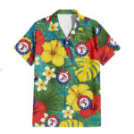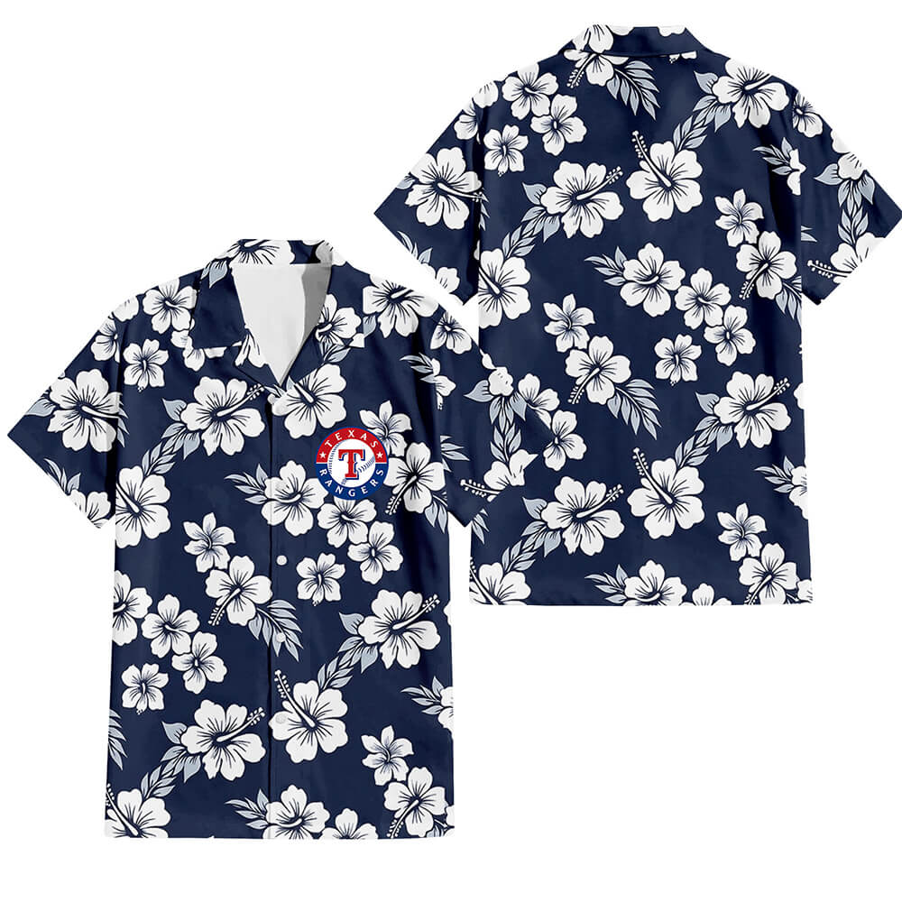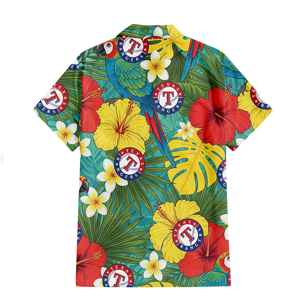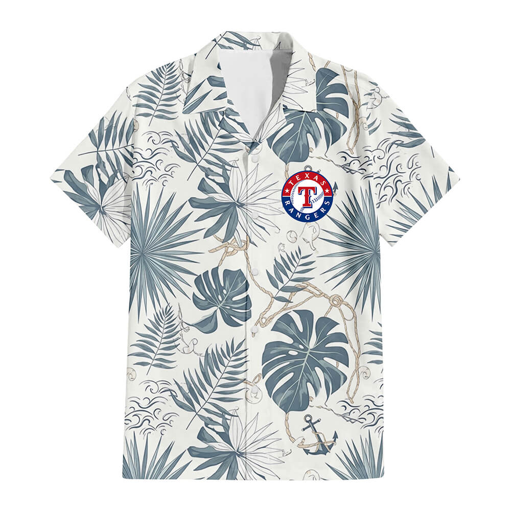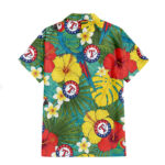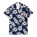 The design pairs vibrant Hawaiian motifs with the iconic colors and imagery of the Rangers, creating a bold look that celebrates both the energy of Texas baseball and the carefree spirit of the islands. Every detail—from the striking team graphics to the playful tropical patterns—captures the passion and tradition of Rangers fans, making this shirt more than just casual wear. It’s a statement of loyalty and pride that stands out wherever you go.