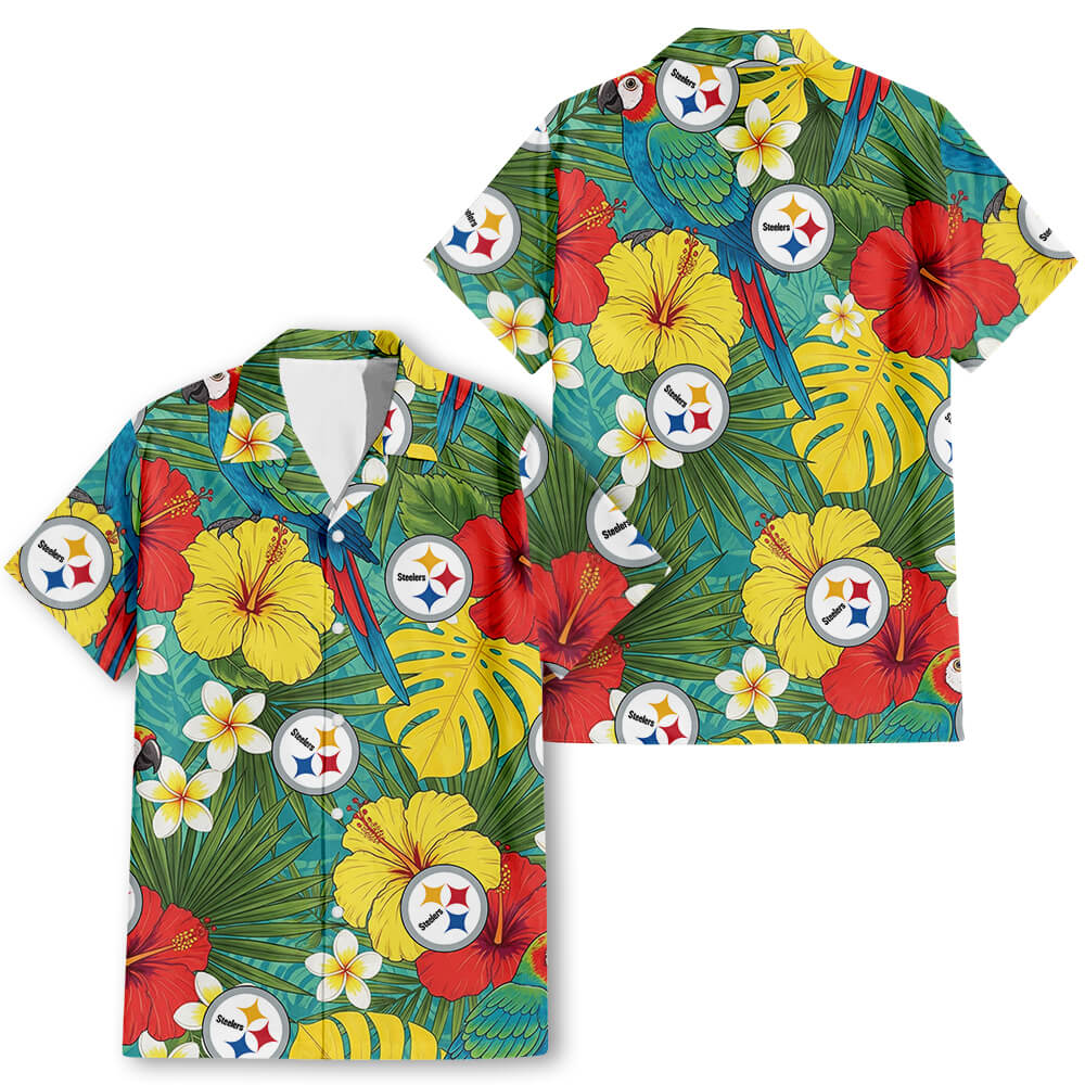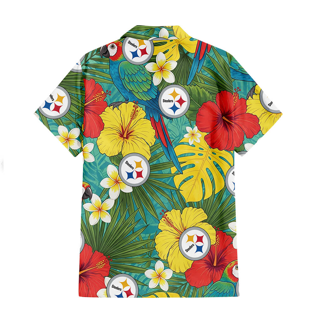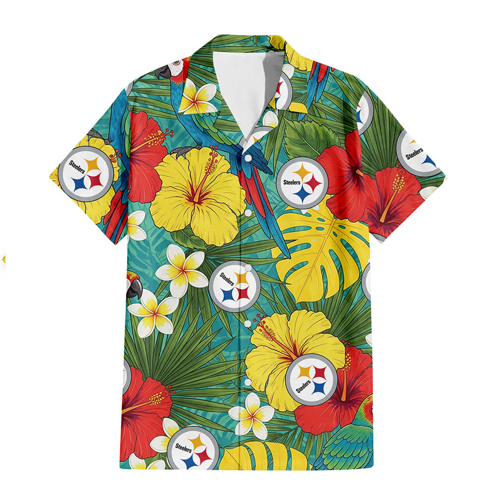 The design merges tropical patterns with the iconic imagery of the Steelers, combining vibrant motifs with the bold team colors that fans know and love. Every detail, from the tropical accents to the unmistakable Pittsburgh symbols, reflects the energy and tradition that the team brings to the field. It’s a unique blend of laid-back vibes and fierce loyalty, making it much more than just a casual shirt—it’s a celebration of your connection to the team.