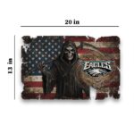 The American flag in the background represents national pride, unity, and resilience. Together, the imagery combines the powerful identity of the Philadelphia Eagles with classic American patriotism, making for a striking and meaningful design